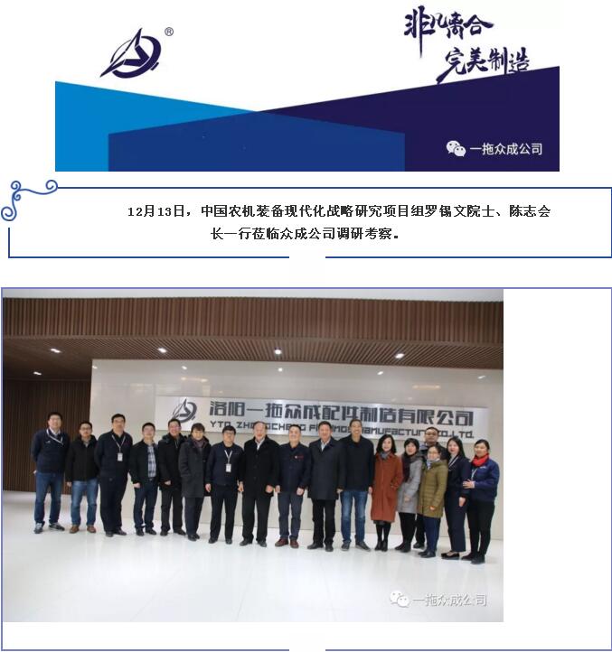 中國(guó)農(nóng)機(jī)裝備現(xiàn)代化戰(zhàn)略研究項(xiàng)目組羅錫文院士、陳志會(huì)長(zhǎng)一行蒞臨我公司
